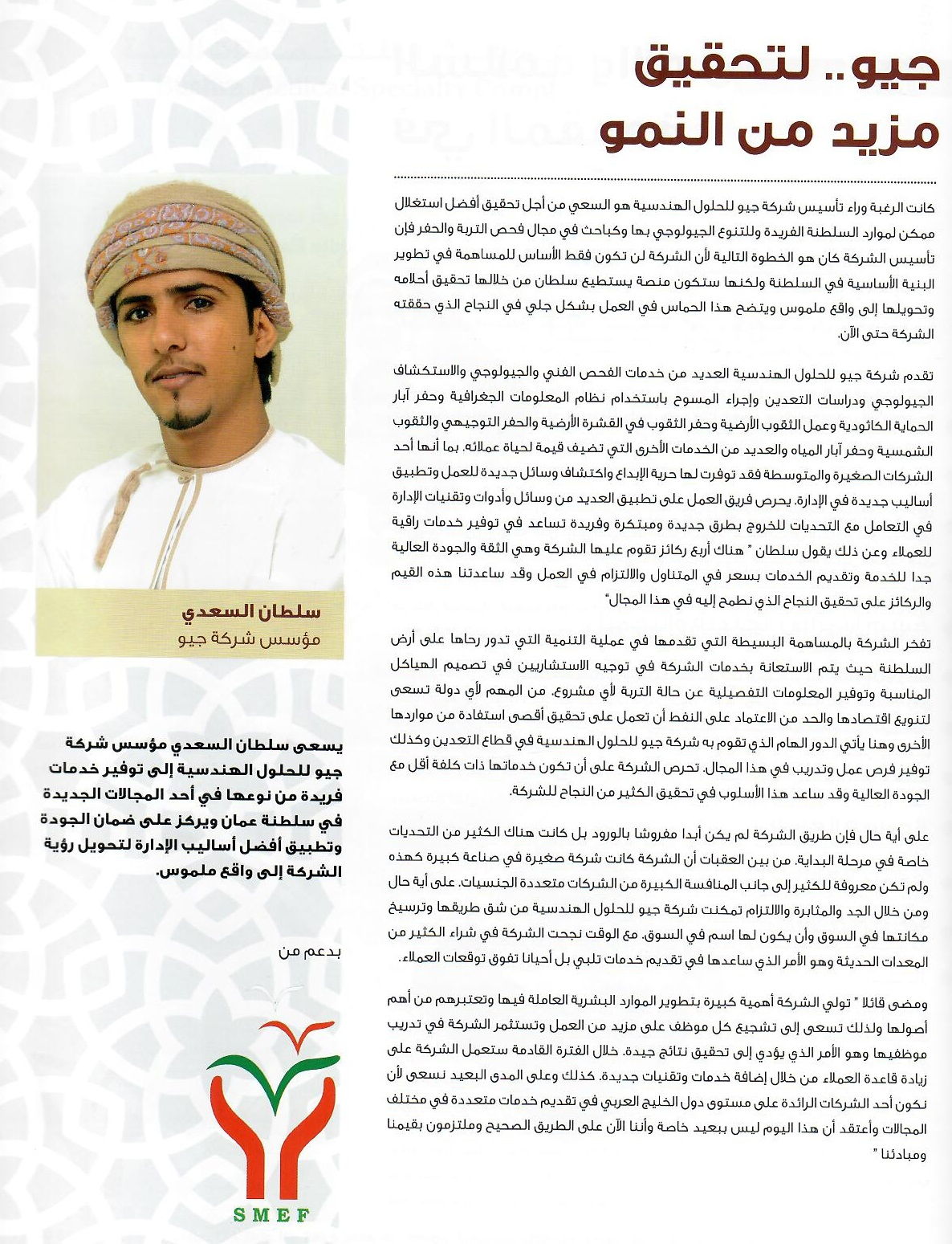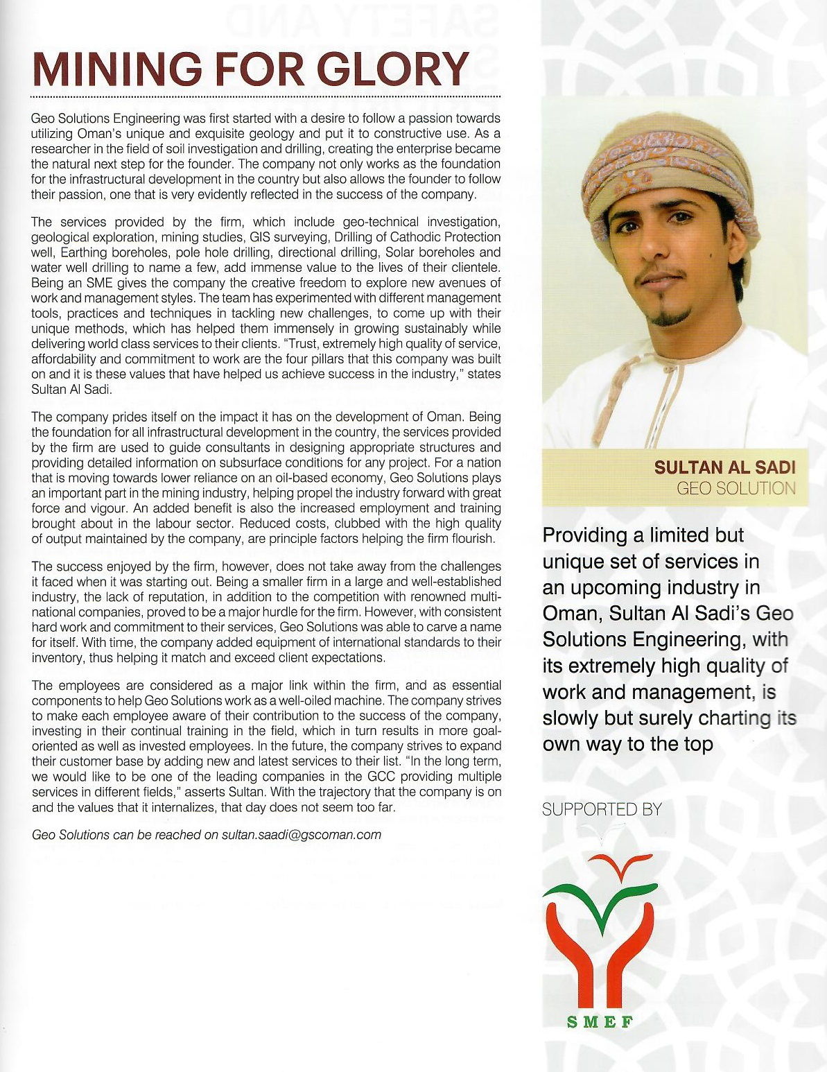 Muscat: Geo Solutions Engineering a leading geological service provider in Sultanate of Oman listed in Most promising MSME's in Sultanate.